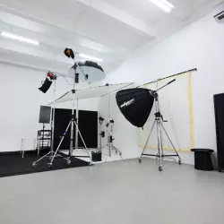 Съемочный павильон с циклорамой 100 кв.м, над которой располагается 1 фермовый подвес 3 на 4 метра, с грузоподъёмностью до 400 кг.