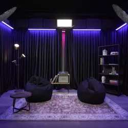 Минимализм, геометрические формы, дизайнерская мебель с яркими акцентами – именно эти пункты совмещает в себе зал Swan. Светлая локация для съемок с легкими сатиновыми белыми шторами и большим количеством естественного света, благодаря которому создавать объемные портреты и модельные тесты будет просто и удобно.
