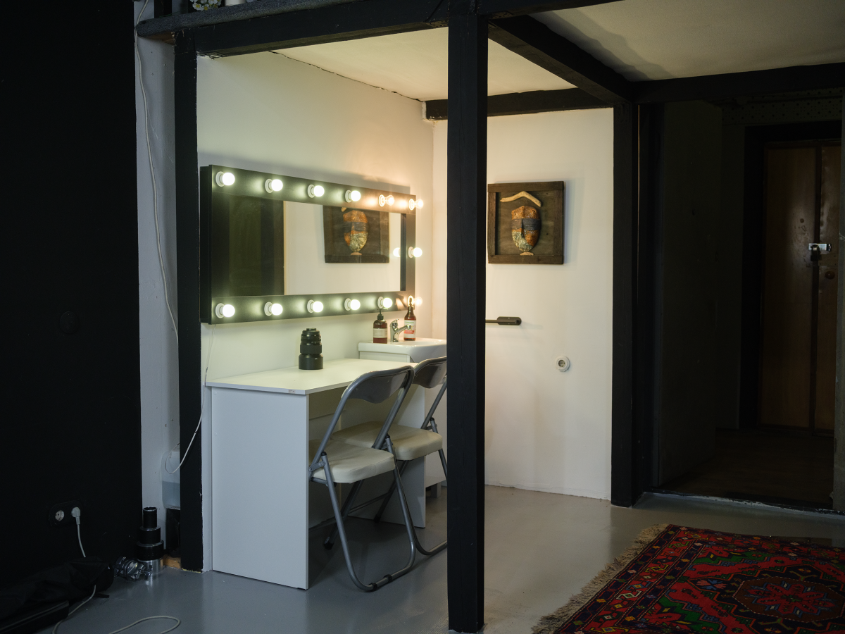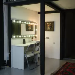 •Профессиональное гримерное зеркало с подсветкой, позволяющее визажисту и модели работать с максимальной точностью. Весь процесс подготовки к съемке можно провести прямо в студии.