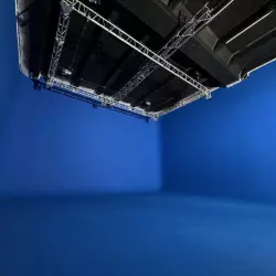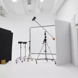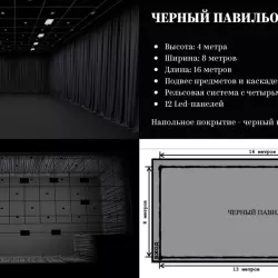 Павильон с хромакеем, белой циклорамой, чёрным павильоном и чёрным кабинетом. Профессиональное оборудование. Система крепления на потолке.