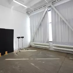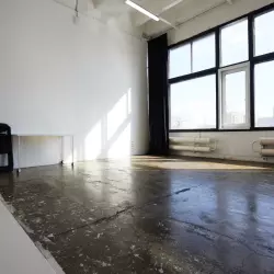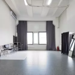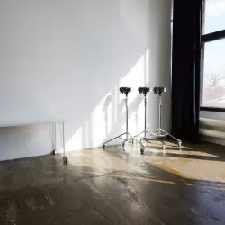 Белый зал площадью 38 кв.м. с большими окнами и солнечной стороной весь световой день, бетонным полом и всем необходимым оборудованием. Зал используют для съемок модельных снэпшотов (снэпов), модельных тестов и каталогов одежды