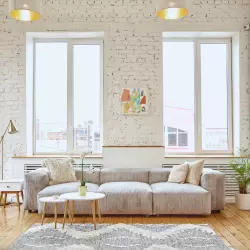Просторный зал, светлый и минималистичный, 58 кв.м.