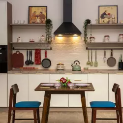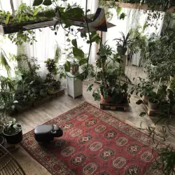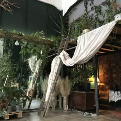 Зал 70 м с разными интерьерными зонами в стиле Винтаж и Бохо.
