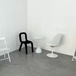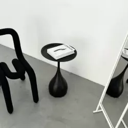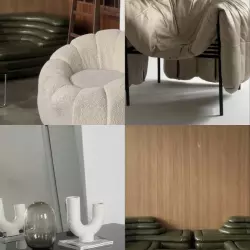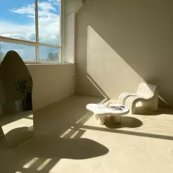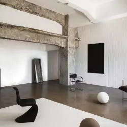 Минималистичный интерьерный зал с циклорамой и дизайнерской мебелью в студии LO/ST Pravda