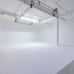 Белый зал площадью 70 кв.м. с белоснежной угловой циклорамой. Зал подойдет для профессиональной съемки каталогов одежды, обуви и аксессуаров, а также имиджевых и частных съемок в минималистичном стиле.