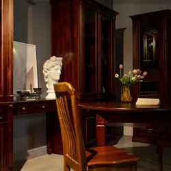 Тёмная комната – глубина и винтажное очарование. Полумрак свечей, антикварная мебель, массивные столы и пианино делают этот зал идеальным для драматичных и мистических образов.