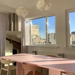 Площадь 95 кв.м., высота потолков 4,5 м.