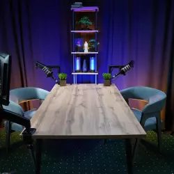 Стильная студия для записи подкастов. Включено все необходимое оборудование и сопровождение оператором. Микрофоны Союз или Shure на выбор. Акустика и звукоизоляция.