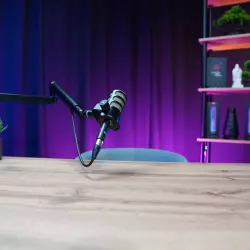 Студия для записи видео и подкастов в темных тонах (черный, графит, серый)