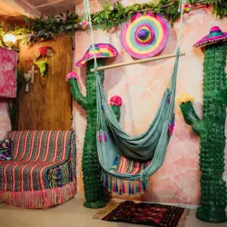 Окунуться в атмосферу праздника можно в горячей Мексике. Здесь каждая деталь создана вручную по традиционным технологиям мексиканских мастеров. Все пространство наполнено магией Санта Муэрте. Вам останется только выбрать каким персонажем мексиканской культуры Вы хотите стать.
