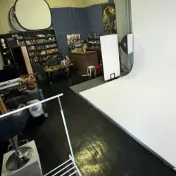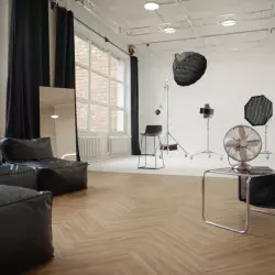 Большой светлый зал с циклорамой и огромными панорамными окнами, выходящими на юг, что даёт яркий падающий свет в дневное время, возможность полного затемнения, фактурные и рельефные зоны. Возможность установки любого фона из наличия, большой диван, высокие потолки, гримёрное место.