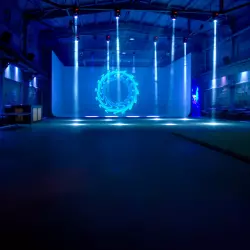 Хромакейная студия в виде трехсторонней П-образной циклорамы, размером 7х8 метров и высотой 6 метров.