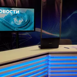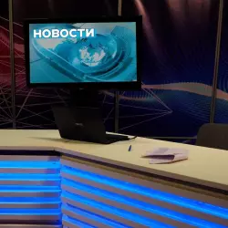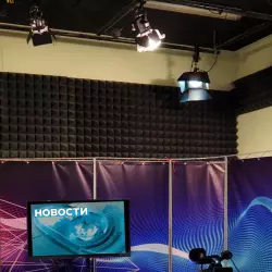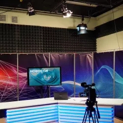Новостная студия. Выгородка для сьемки с большим телевизором.