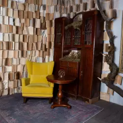 Циклорама, Ретро зона со стеной из книг и ретро мебелью, зона с песком и пианино Система фонов (10 цветов) зал камерный, можно воссоздать полумрак и неоновую съемку.