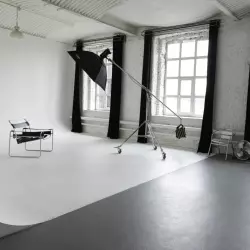 Интерьерная фотостудия в стиле минимализм с белой циклорамой