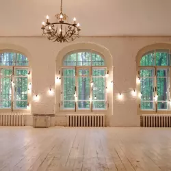 Просторный зал в светлых тонах с двумя большими окнами, выходящими на теневую сторону, что даёт мягкий рассеянный свет. В зале белые деревянные полы, высокие потолки, разнообразные фактурные стены. Возможность установки любого фона из наличия, гримёрное место.