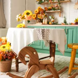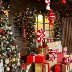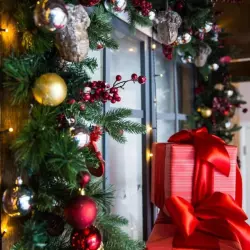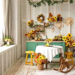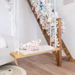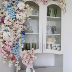 - Крыльцо шале с цветочным декором в бело-зелёных оттенках;