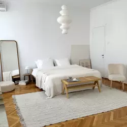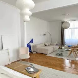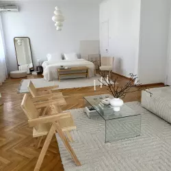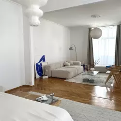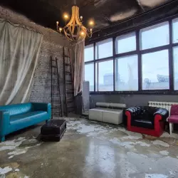 Уникальная интерьерная студия 140 квадратных метров с зоной ванны, кухни, спальни, гостиной в одном пространстве