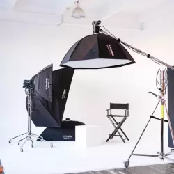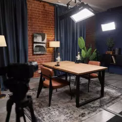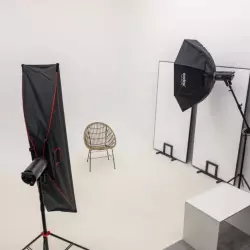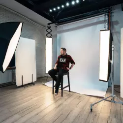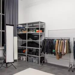 Зал с подвесной системой хромакей, для каталожной и предметной съемки, маркетплейсов, записей интервью и визитной карточки.