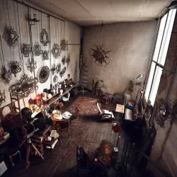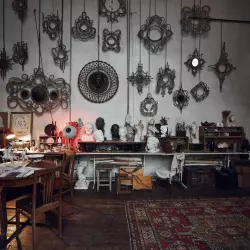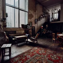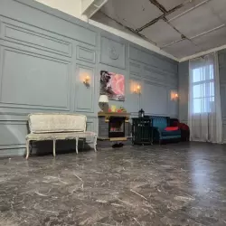 Фотостудия на территории скульптурной мастерской Советского периода. Два этажа и закрытый двор с предметами искусства, советской атрибутикой и мебелью.