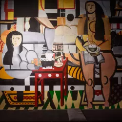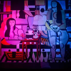 Зал в стиле мастерской художника. Невероятные фактурные стены, холсты, скульптуры, тканевый фон.