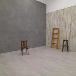 Фотостудия с циклорамой, стеной из натурального дерева и стеной из металла