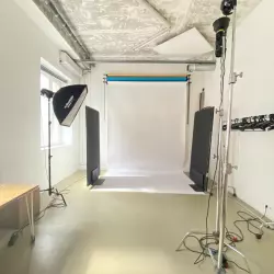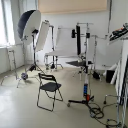 Зал пригоден для проведения фотосъемок и для проведения различных теоретических занятий. Есть черный, серый и белый фоны, осветительное оборудование с различными насадками, стулья для проведения лекций и мастер-классов, гримерка.