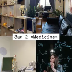 Фотостудия в медицинском стиле, кушетка, атласы, муляжи, стеклянная доска, reels