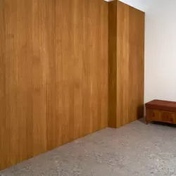 Студия со старинным деревяным полом и двумя окнами. Приточно-вытяжная вентиляция и кондиционер.