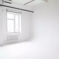 Студия с белыми стенами, двумя окнами