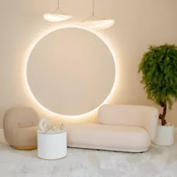 Студия 34 -стильное пространство с панорамными окнами в пол, выполнено в серых тонах, фактурные стены с подсветкой придают залу глубину и динамику. Зал идеально подходит для любых каталожных съёмок и мероприятий.
