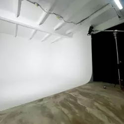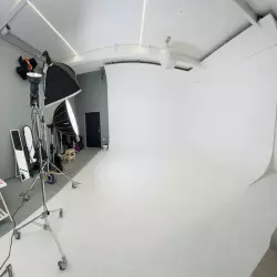 Большой зал с большой угловой белой циклорамой. Отлично подходит для съёмки крупных проектов. Зал 130м2, внутри есть отдельная гримерная комната 30м2.