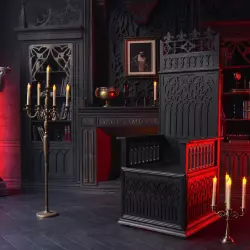 Самый востребованный зал среди наших постоянных фотографов. В одной комнате сразу три интересные зоны: мистический угол с фрагментами зеркал, романтическая зона с кроватью и окном и, любимые многими фотографами, стены с дизайнерской фактурной штукатуркой: белая и коричневая. Система на 3 фона и небо