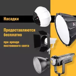 1. Базовое оборудование, включенное в стоимость аренды 2 моноблока PROFOTO D1 500 Air, 1 синхронизатор и насадки. Аренда дополнительных моноблоков: Profoto D1 500 Air - 700 рублей; Profoto D2 500 Air - 1000 рублей. Также можно арендовать постоянный свет: он представлен