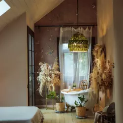 Зал Skandi — это интерьерная фотостудия в скандинавском стиле. Скандинавская атмосфера подойдет всем, кто ценит тепло и уют домашней обстановки. В интерьере преобладают пастельные тона: белый, бежевый, светло-серый, светло-голубой, светло-зеленый, светло-коричневый. Интерьер зала сос