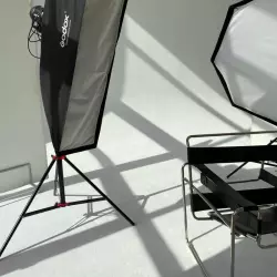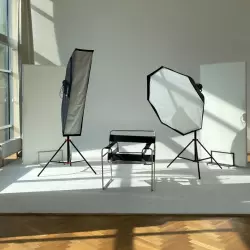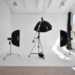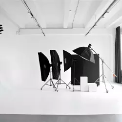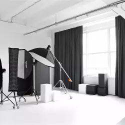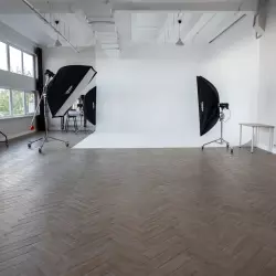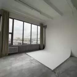 Современная фотостудия с циклорамой в форме чаши. В стоимость включено всё: профессиональное освещение, как импульсное, так и постоянное. Просторное светлое помещение с большими окнами и блэкаут-шторами. Удобное расположение — 7 минут от метро, есть бесплатная парковка.