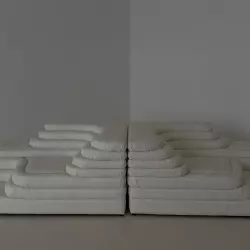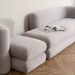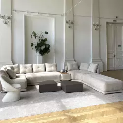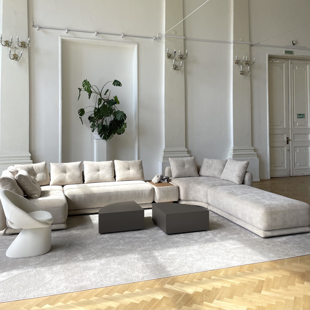 В зале ICECREAM есть большой белый дизайнерский диван модулями