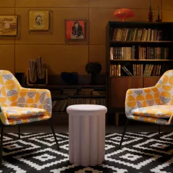Зал SIXTY - зал с белой циклорамой и мебелью в стиле 60х