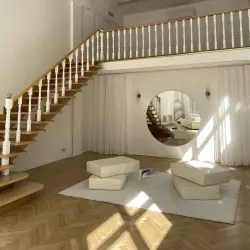 Зал с гарантией чистого звука и с разными локациями для видеосъемки подкастов, интервью, рилсов и семинаров.