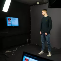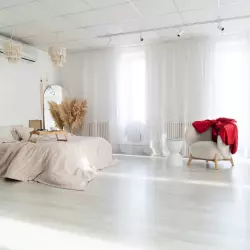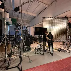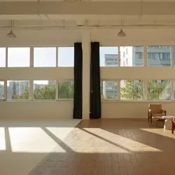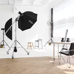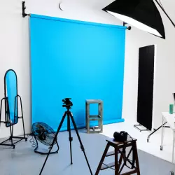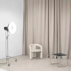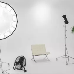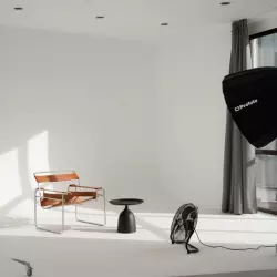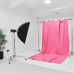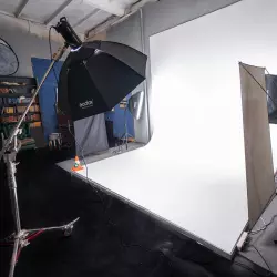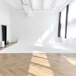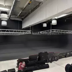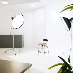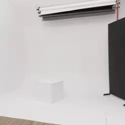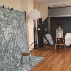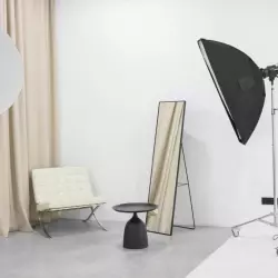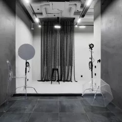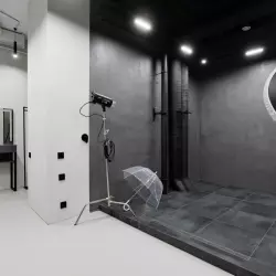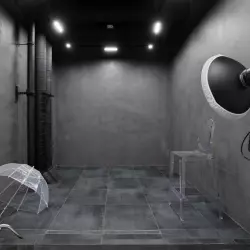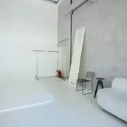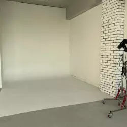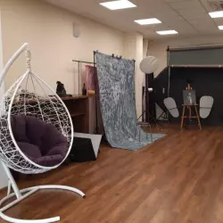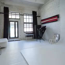 Зал с белой циклорамой 5х5 и двумя оригинальными локациями. В стоимость включены 3 импульсных и три постоянных источника.