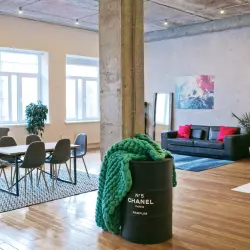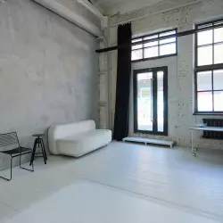 Лофт площадью 176 квадратных метров, с белой циклорамой – вылет 3,5 ширина 5,5 м. высокие потолки 3,5 метра, 4 фотозоны.