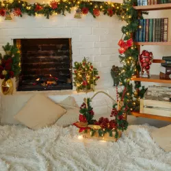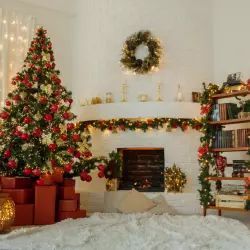 Новогодний зал с камином, пропитанный атмосферой праздника, чудес и торжества.