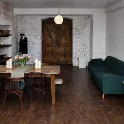 Шикарный просторный зал, украшенный изумительными декорациями, созданными с любовью и добротой. Подойдет для любого типа съемок, и подарит вам незабываемый уют и тепло. Хотите семейную фотосессию, или реализовать задумки для своего креативного новогоднего контента? Наш зал подари