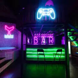 COTTY уникальная локация в Москве с подвесной RGB лампой и неоновым светом