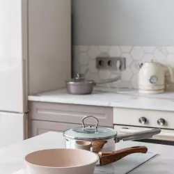 Зал с полностью оборудованной кухней с водой, холодильником, плитой и духовкой. Оборудование и специализированный реквизит для съемок еды, продуктов и предметов.