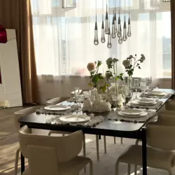 Зал "Кухня" - светлый, стильный, интерьерный зал в скандинавском стиле с полностью функциональной кухней: варочная панель, духовой шкаф, холодильник, а также мобильный остров с встроенной рабочей варочной панелью.