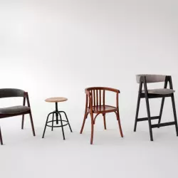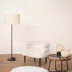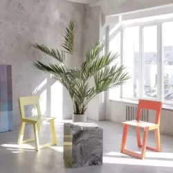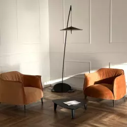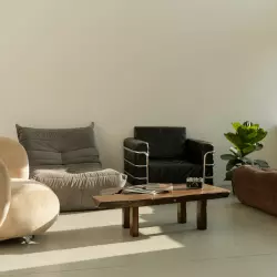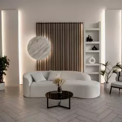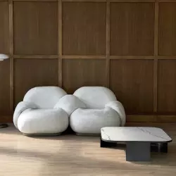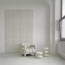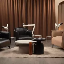 Светлый зал с акцентной мебелью и циклорамой