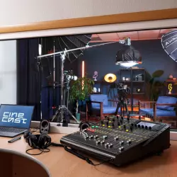 Зал 3 - CAFE в студии ОПЕРПОСТ (Москва) — уютное пространство в бежевых тонах с атмосферой европейского кафе. Аренда для съёмок подкастов и интервью.
