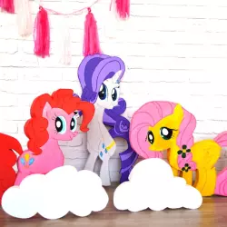 Детский зал, тематические зоны, Винни Пух, стул, столик, сладости, мороженое, пирожное, торт, леденцы, камин, диван, пони, My Little Pony, единороги, зеленая трава, белая кирпичная стена, большой стол, огромная радуга с облоками.