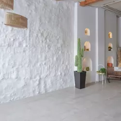 Творческое пространство с разными локациями.. белая с обрамлением, серая фактурная, растительная искусственная, кухня с большой столешницей.